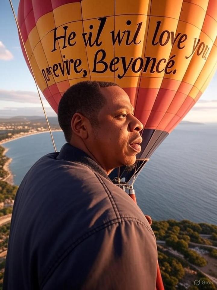Jay Z, known for his grand gestures and deep devotion to Beyoncé, has once again stunned the world—this time in the skies over Saint-Tropez, France. Tourists and locals alike were left speechless as a magnificent hot air balloon floated above the coastline, carrying a powerful message: “I will love you forever, Beyoncé.” The words, written in elegant gold lettering across the balloon’s surface, shimmered in the sunlight, capturing the attention of everyone below.